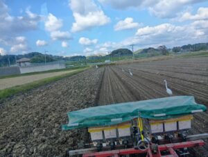 人参の播種後すぐに、追いかけで籾殻散布を行っているため
